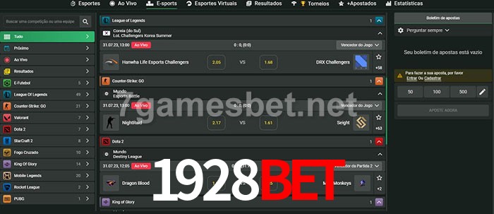 O 1928Bet oferece uma grande seleção de opções de apostas em e-sports com probabilidades competitivas
